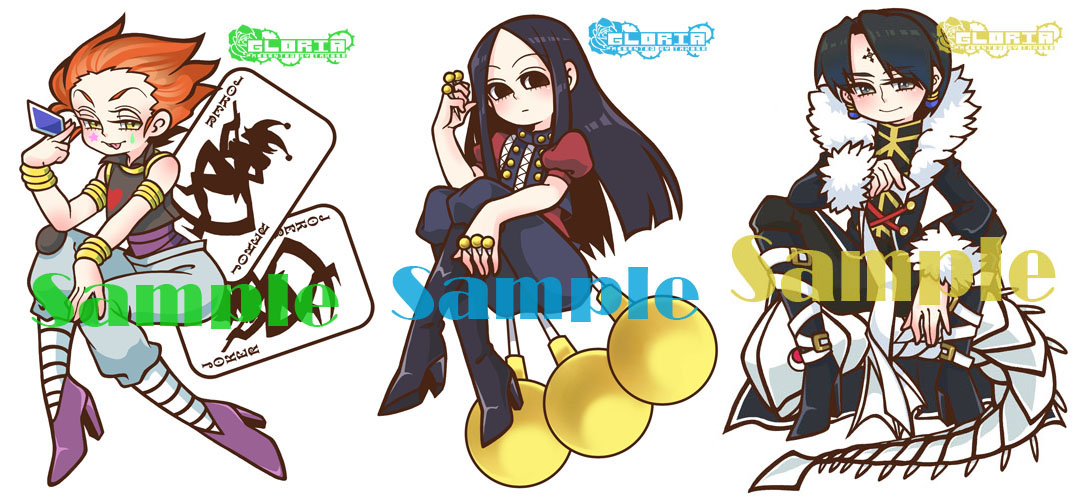 ヒソカ・イルミ・クロロの大き目ラミカ3枚のセットです。